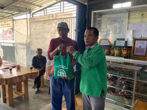 Diakhir acara ketua kelompok tani Permata Sari Jalil membagikan sembako kepada para anggotanya untuk meringankan beban ekonomi keluarga para anggota kelompok tani tersebut.