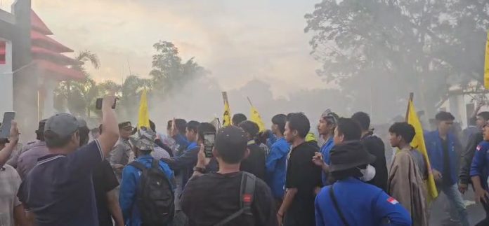 Bengkulu, Spoiler.id — Sekitar 60 orang massa aksi dari Organisasi Kemasyarakatan Pemuda (OKP) Pergerakan Mahasiswa Islam Indonesia (PMII) Bengkulu menggelar unjuk rasa di depan Kantor DPRD Provinsi Bengkulu dan Kantor Gubernur Bengkulu, Rabu (28/5).