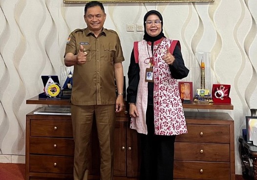 Kepala Balai Bahasa Provinsi Bengkulu Andriana Yohan (kanan) bersama Bupati Bengkulu Tengah Rachmat Riyanto (kiri) dalam audiensi kerja sama kebahasaan di ruang kerja Bupati, Kantor Bupati Bengkulu Tengah, Senin (7/7/2025). (Foto: Agusian/Spoiler.id)
