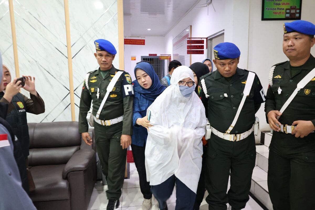 Salah seorang tersangka dibawa ke Lapas perempuan usai ditetapkan tersangka oleh Kejati Bengkulu, Kamis (10/7/2025). (Foto: Syafri/Spoiler.id)