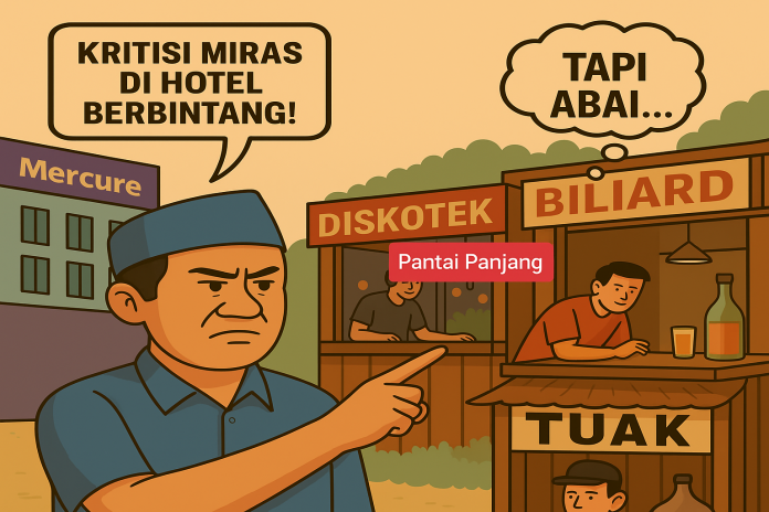 Lebih ironis, warung-warung tuak di sepanjang Pantai Panjang bebas beroperasi tanpa pengawasan berarti. Kenapa Teuku Zulkarnain tidak bersuara?