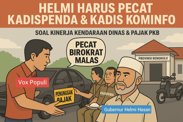 Ironisnya, daripada memperbaiki kinerja, para pejabat malah sibuk membungkam kritik Vox Populi, mewakili suara publik yang justru membongkar kelalaian ini. Jika Helmi Hasan serius mau bersih-bersih, maka Kepala Dispenda dan Kepala Kominfo layak dicopot. Tak layak birokrat makan gaji rakyat kalau kerjanya malas dan bermental ‘asal aman’.