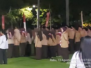Kwartir Daerah (Kwarda) Gerakan Pramuka 07 Bengkulu menggelar Ulang Janji dan Renungan Hari Pramuka ke-64 di Balai Raya Semarak Bengkulu, Rabu (13/8) malam. (Foto: Syafri Yantoni/Spoiler.id)