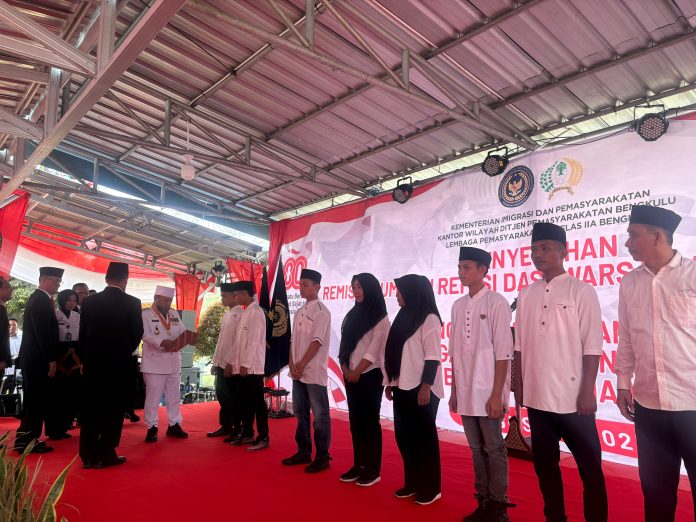 Bengkulu, Spoiler.id – Sebanyak 100 narapidana di Provinsi Bengkulu dinyatakan bebas setelah menerima remisi khusus pada momentum peringatan Hari Ulang Tahun (HUT) ke-80 Republik Indonesia. Penyerahan remisi dilakukan secara terpusat di Lembaga Pemasyarakatan (Lapas) Kelas IIA Bengkulu, Minggu (17/8).