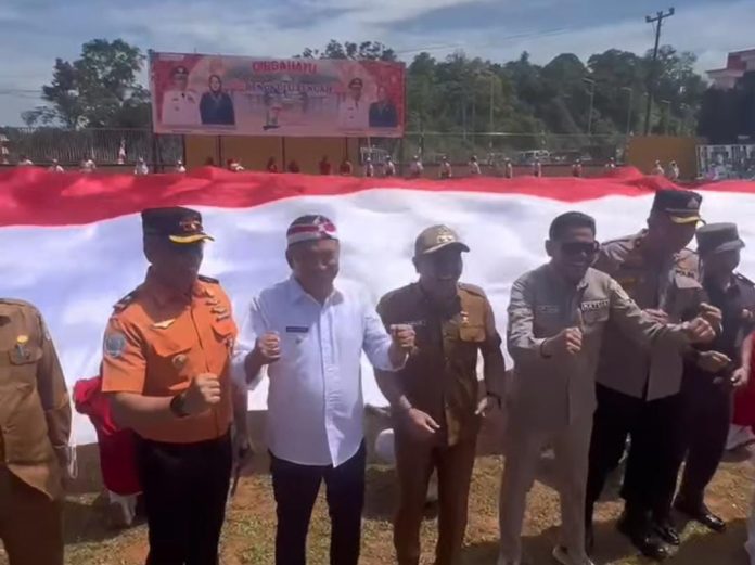 Bengkulu Tengah, Spoiler.id – Ribuan masyarakat Kabupaten Bengkulu Tengah bersama pemerintah daerah membentangkan bendera Merah Putih sepanjang 2.600 meter, Selasa (19/8), dalam rangka memperingati HUT ke-80 Kemerdekaan Republik Indonesia. Aksi spektakuler ini dimulai dari depan Pendopo Bukit Kandis hingga depan Mapolres Bengkulu Tengah.