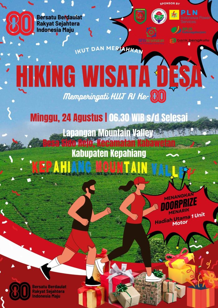 Kepahiang, Spoiler.id – Dalam rangka memperingati HUT Ke-80 Kemerdekaan Republik Indonesia, Pemerintah Desa Sido Rejo, Kecamatan Kabawetan, Kabupaten Kepahiang, menggelar kegiatan Hiking Wisata Desa di Lapangan Mountain Valley, Minggu (24/8) pagi.