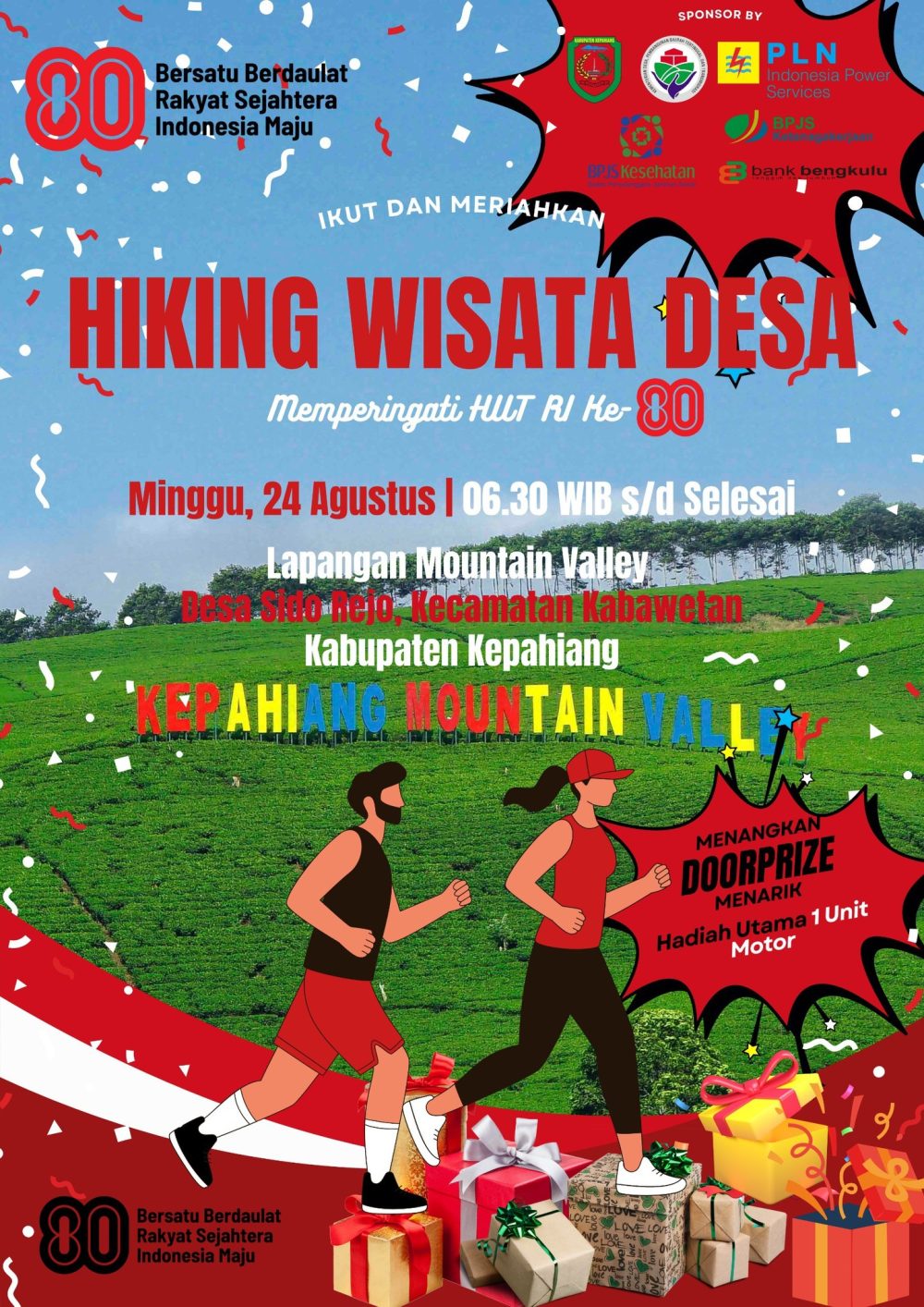 “Kami ingin momentum HUT RI tahun ini dirayakan dengan cara yang sehat, gembira, dan mampu menggerakkan ekonomi masyarakat. Hiking Wisata Desa menjadi wadah silaturahmi sekaligus promosi potensi wisata alam Kepahiang,” ujar Bupati Kepahiang, H. Zurdi Nata, S.IP., Rabu.