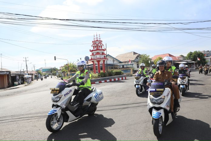 Patroli melibatkan 118 personel, terdiri dari 50 anggota Polri, 20 TNI, 33 Pemda dan 12 OKP. Sebanyak 22 unit kendaraan roda empat dan 32 kendaraan roda dua turut dikerahkan, menyusuri rute strategis Kota Bengkulu mulai dari Mapolda hingga kembali finis di Mapolda.