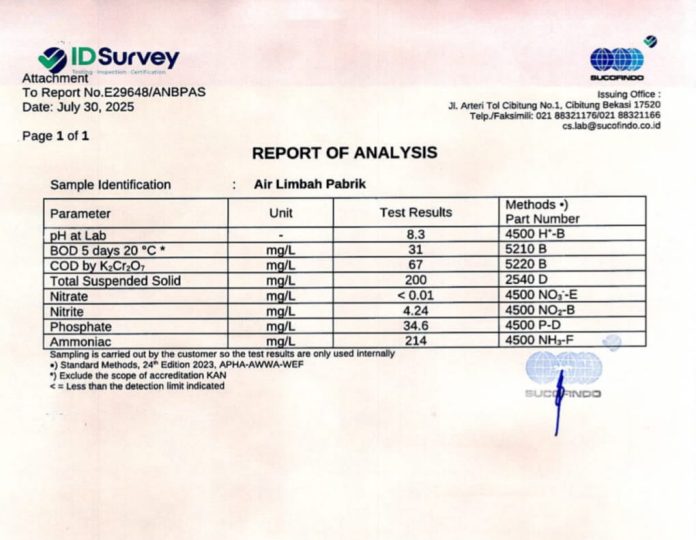 “Kami sudah pernah menyurati pihak perusahaan untuk meminta klarifikasi, namun tidak ada jawaban. Karena itu, kami melakukan uji laboratorium terhadap sampel limbah yang dibuang ke Sungai Mertam sebagai bukti adanya pencemaran,” ujarnya kepada wartawan, Kamis (4/9).
