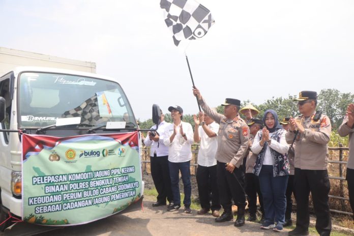 Setelah kegiatan panen raya, dilakukan pelepasan komoditi jagung pipil kering binaan Polres Bengkulu Tengah ke gudang Forum Bulog Cabang Sidomulyo Bengkulu sebagai Cadangan Jagung Pemerintah.