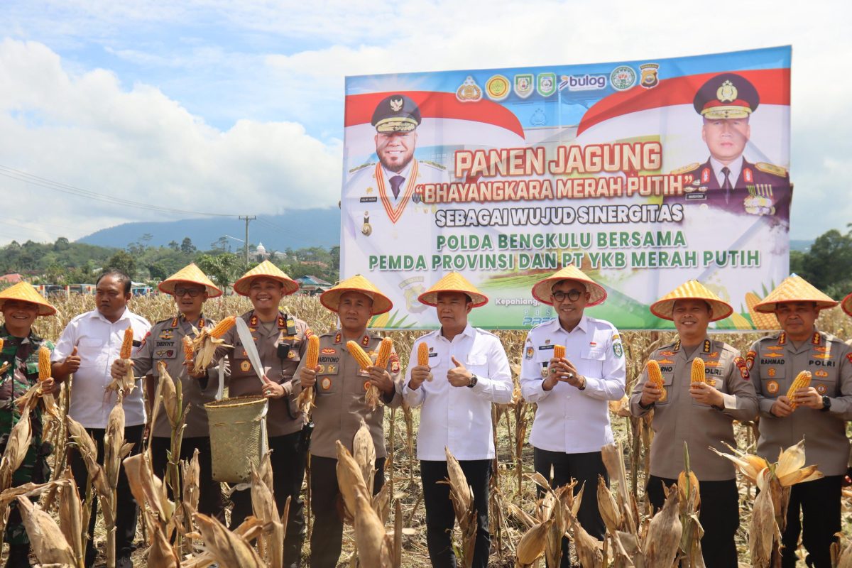 Kapolda Bengkulu Panen Jagung Bhayangkara Merah Putih, Sebagai Wujud Sinergitas Polda Bengkulu bersama Pemda Provinsi Bengkulu dan PT YKB Merah Putih