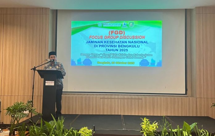 Bengkulu, Spoiler.id – Penjabat Sekretaris Daerah Provinsi Bengkulu, Herwan Antoni, membuka secara resmi Focus Group Discussion (FGD) Jaminan Kesehatan Nasional (JKN) 2025 di Hotel Mercure Bengkulu, Kamis (23/10). Kegiatan ini mengangkat tema “Sinergi Tata Kelola dan Keberlanjutan Finansial Program JKN” sebagai langkah strategis memperkuat layanan kesehatan merata bagi masyarakat.
