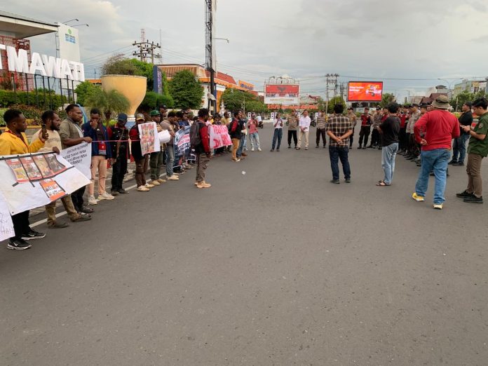 “Jika persoalan HAM di tanah Papua tidak segera diselesaikan, maka kami menuntut Presiden Prabowo untuk mundur dari jabatannya,” ujar salah satu orator dalam orasi yang disampaikan di tengah kerumunan massa.