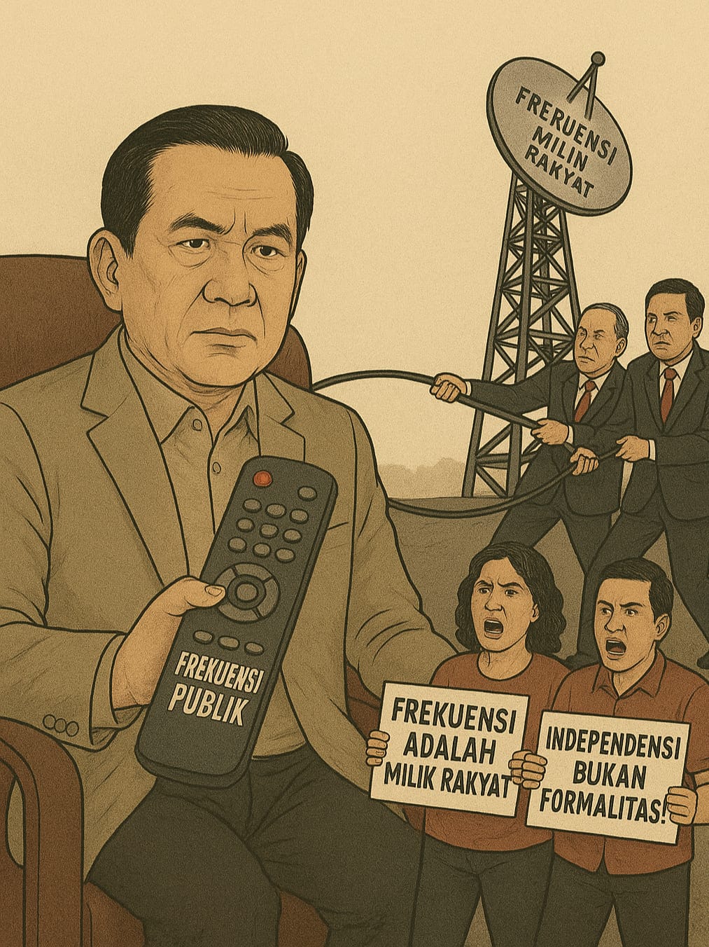 Frekuensi, sebagaimana diketahui, adalah milik publik. Namun ketika proses pengawasan frekuensi dipengaruhi aktor politik, penyiaran berubah menjadi alat kontrol persepsi.