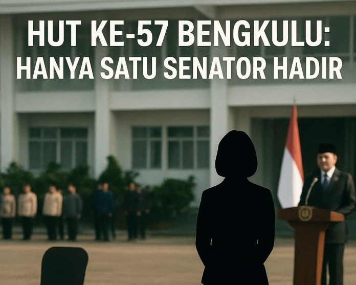 Bengkulu, Spoiler.id – Upacara Hari Ulang Tahun ke-57 Provinsi Bengkulu, Selasa (18/11), menyisakan tanda tanya. Dari empat senator DPD RI asal Bengkulu—yang selama ini tampil bersama dalam berbagai publikasi resmi dan foto formasi sebagai representasi daerah di Senayan—hanya apt. Destita Khairilisani yang hadir di halaman Kantor Gubernur Bengkulu.