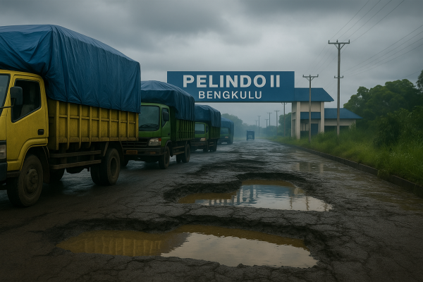 Kota Bengkulu, Spoiler.id — Kerusakan pada akses utama menuju Pelabuhan Pulau Baai kembali menjadi buah bibir. Lubang-lubang menganga dan permukaan jalan yang amblas memanjang seperti tak lagi mampu menyembunyikan beban yang dipikulnya saban hari. Di tengah lalu lintas truk batu bara yang tak pernah benar-benar jeda, perhatian publik pun mengerucut pada satu nama: PT Pelindo Bengkulu.