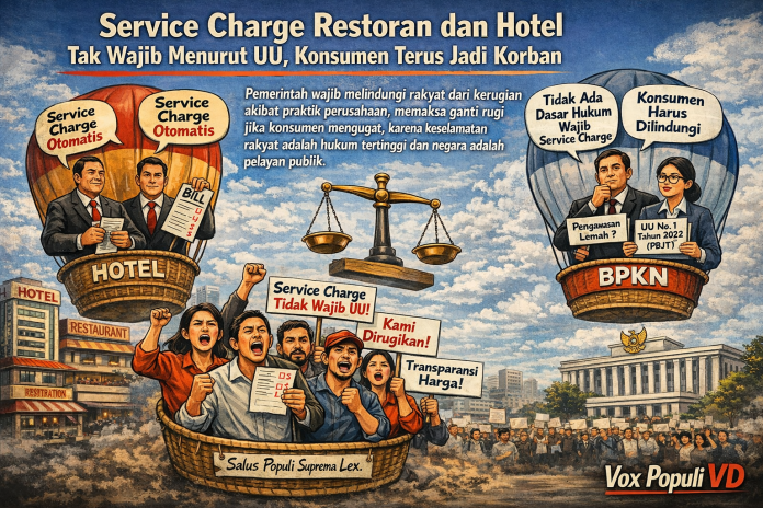 Prinsip Salus Populi Suprema Lex — keselamatan dan kepentingan rakyat adalah hukum tertinggi — harus menjadi kompas kebijakan negara. Pemerintah bukan pelayan korporasi, melainkan pelayan rakyat. Pembiaran terhadap service charge tanpa dasar hukum sama artinya dengan membiarkan ketidakadilan dilegalkan melalui kebiasaan.