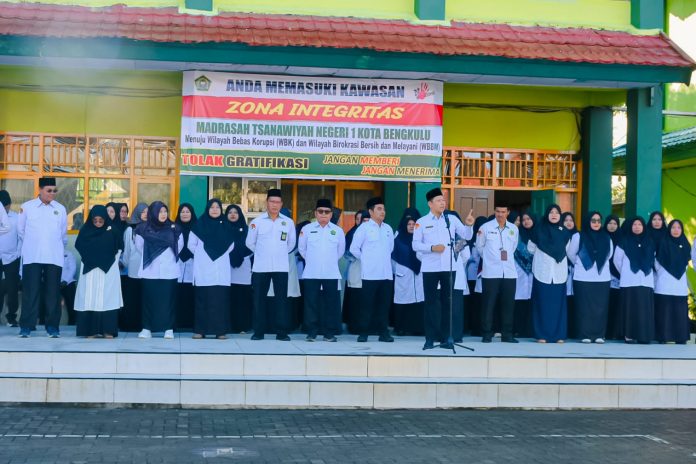 Apresiasi itu disampaikan Saefudin saat bertindak sebagai pembina upacara bendera di MTsN 1 Kota Bengkulu, Senin (12/1). Ia menilai rekam jejak prestasi MTsN 1 Kota Bengkulu menunjukkan kontribusi nyata dalam memajukan mutu pendidikan madrasah di Provinsi Bengkulu.