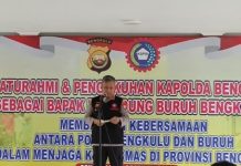 Bengkulu, Spoiler.id – Kepala Kepolisian Daerah Bengkulu Irjen Pol. Mardiyono, S.Ik., M.Si. dikukuhkan sebagai Bapak Pelindung Buruh Bengkulu dalam sebuah kegiatan yang digelar di...